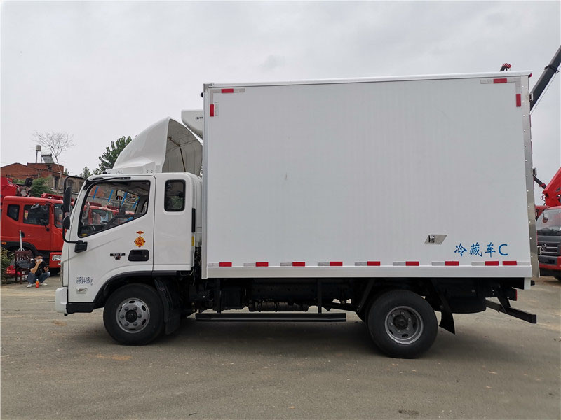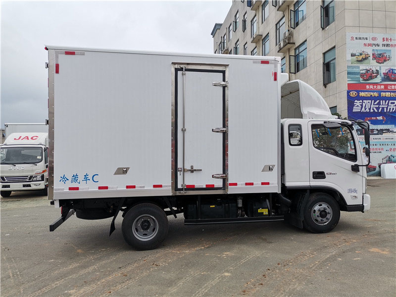 福田歐馬可S3 排半 國六 寬體冷藏車,整車型號:BJ5048XLC-FM,底盤型號:BJ1048V9JD6-FT,整車尺寸:5995*2550*3420mm,廂體尺寸:3700*2300*2300mm,康明斯156馬力發動機、3.8排量,3360軸距,6擋箱、7.50R16鋼絲胎、氣剎、空調、中控鎖+電動車窗、ABS、動力轉向,防飛濺,大燈調節,剎車自調臂,廂體采用內外玻璃鋼、中間8CM 厚聚氨酯保溫板、底板為防滑花紋鋁板,廂體單開側門,不銹鋼門鎖件,通風槽,安裝-15度制冷機組,其余標配。